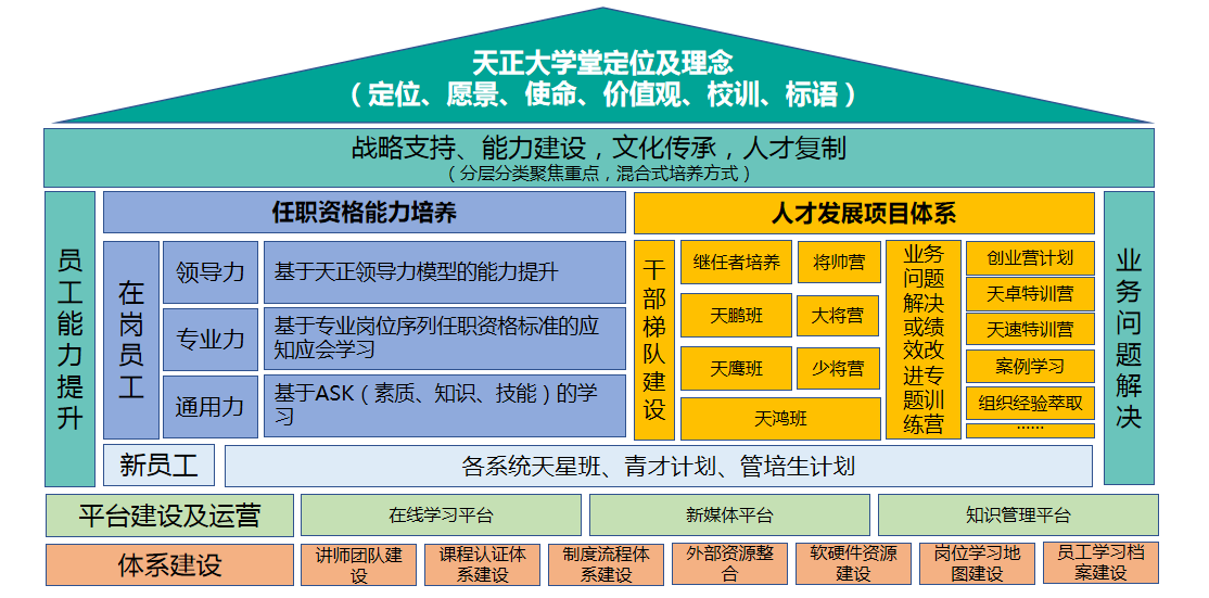 偷国精大学堂秉持“成就员工,实现梦想”的使命,致力于员工能力建设、企业文化传承、人才高效复制,基于关键岗位能力提升和公司业务问题解决,建立分层分类立体化的人才培养体系,来助力组织与员工的绩效提升,支持公司的战略发展!